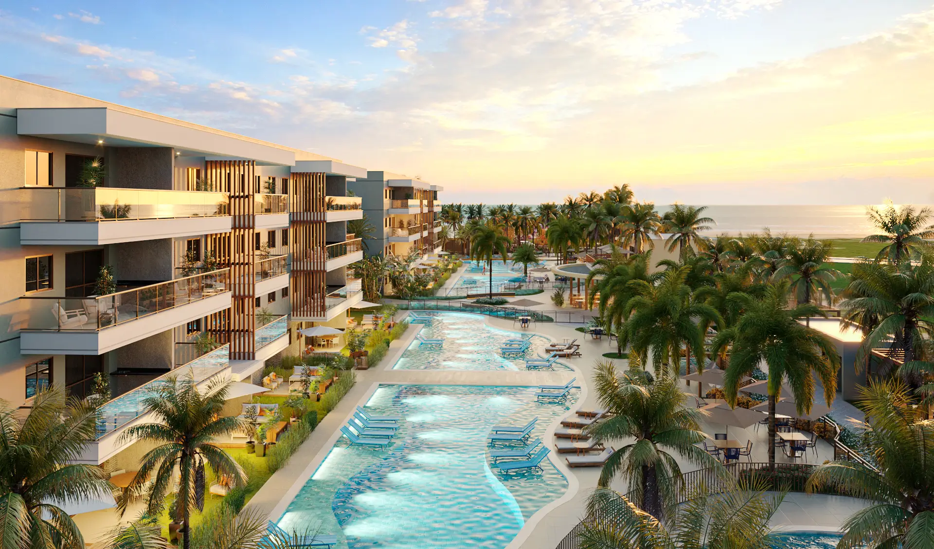 O primeiro empreendimento de praia do Ceará fica em uma paisagem deslumbrante, de frente para o mar e com uma localização privilegiada, a poucos minutos de restaurantes, serviços, barracas de praia e, claro, do Beach Park.
